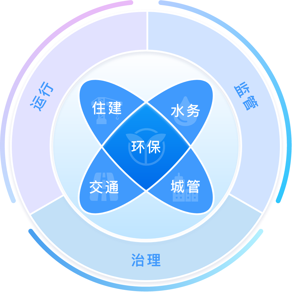 三大領域:城市運行、監(jiān)管、治理;五大行業:環(huán)保、住建、水務、城管、交通